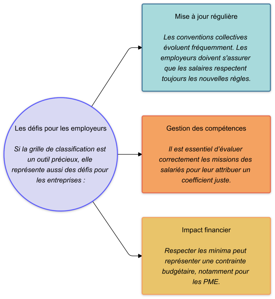 Si la grille de classification est un outil précieux, elle représente aussi des défis pour les entreprises :