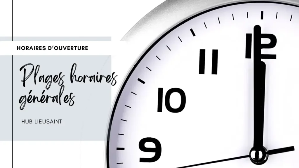 | Hub – général | 00 h 01 à 23 h 59 (selon périodes) | Ouverture maximale sur certaines périodes |