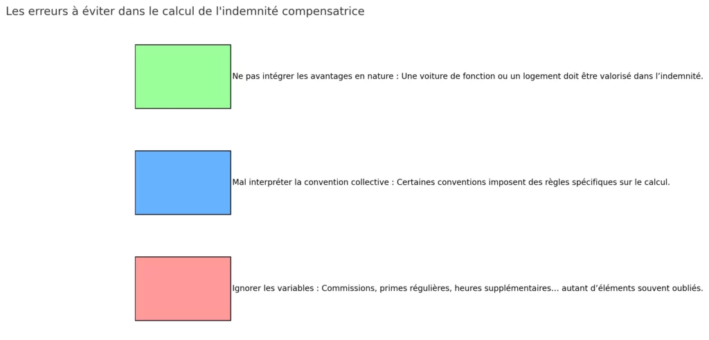 Pour l’employeur, le calcul de l’indemnité compensatrice peut être source de litiges coûteux. Voici les erreurs les plus courantes :