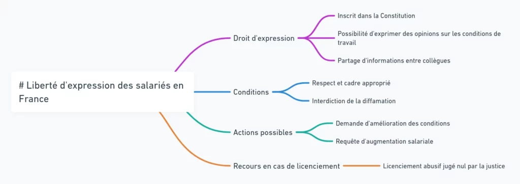 Les salariés ont le droit de s’exprimer sur leurs conditions de travail, leur rémunération ou leur organisation, tant que leurs propos restent respectueux et non diffamatoires. Ce droit est protégé par la Constitution.