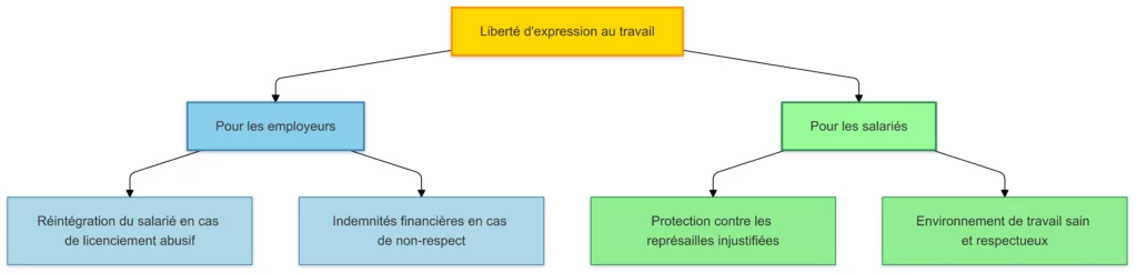 Pour les employeurs, ça veut dire qu’il est essentiel de respecter les libertés fondamentales. Licencier quelqu’un pour avoir exercé sa liberté d’expression, c’est risquer non seulement la réintégration du salarié, mais aussi de lourdes indemnités. Alors, il vaut mieux réfléchir deux fois avant de licencier un salarié pour ses opinions.