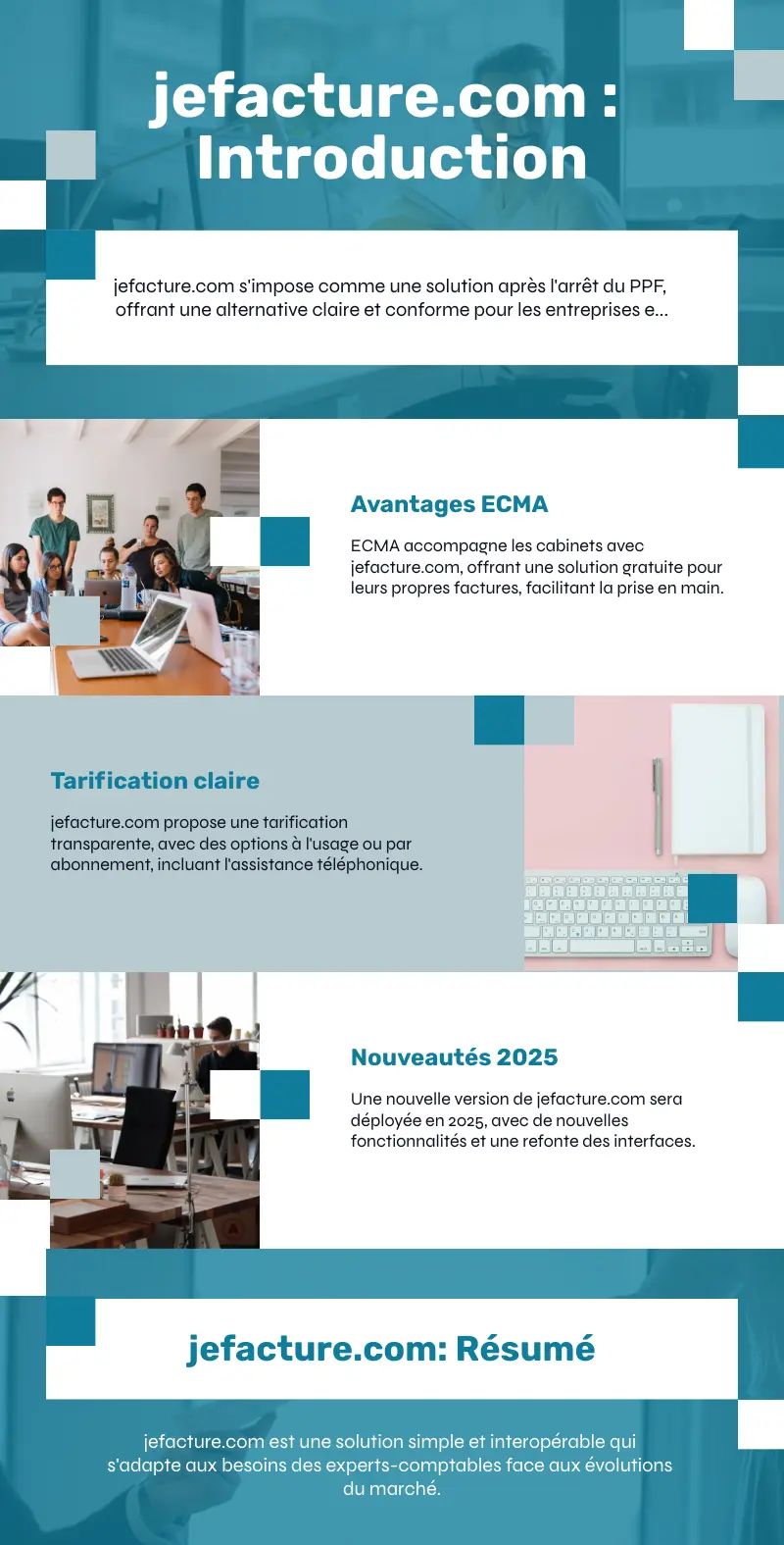 Depuis que le Portail Public de Facturation (PPF) a été écarté comme option gratuite, ECMA s’est rapidement démarquée en consolidant sa stratégie autour de jefacture.com. Cette plateforme, lancée il y a cinq ans, séduit déjà près de 4 000 cabinets. Ce qui attire ? Les cabinets peuvent l’utiliser gratuitement pour leurs propres factures. Un moyen concret de se familiariser avec l’outil, de le tester en conditions réelles, et d’en tirer un retour d’expérience avant de l’introduire auprès de leur clientèle.