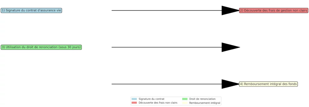 Prenons un cas pratique. Imaginez un assuré qui signe un contrat d’assurance vie et découvre par la suite que certaines informations importantes, comme les frais de gestion, n’étaient pas claires lors de la souscription. Grâce à la faculté de renonciation, il peut se rétracter dans les 30 jours et récupérer l’intégralité des fonds versés.