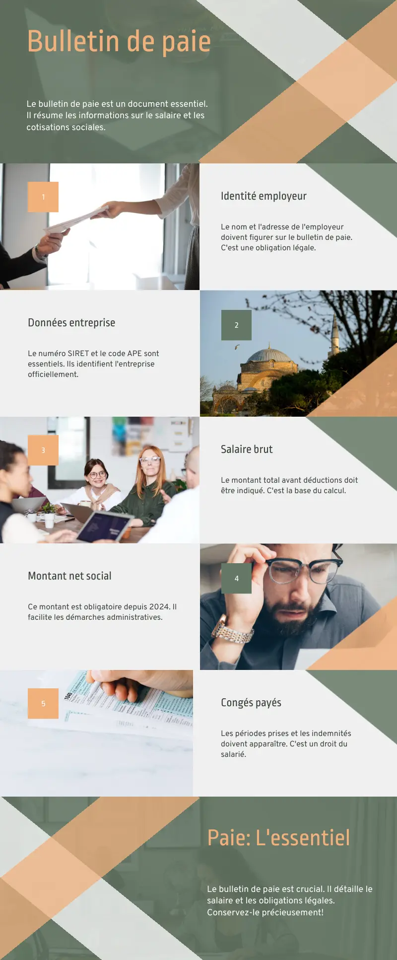 Le bulletin de paie est un document obligatoire remis à chaque salarié lors du versement de son salaire. Il récapitule les montants versés, les cotisations sociales, les retenues, et les informations liées à l’emploi. Depuis 2023, il doit inclure le montant net social.