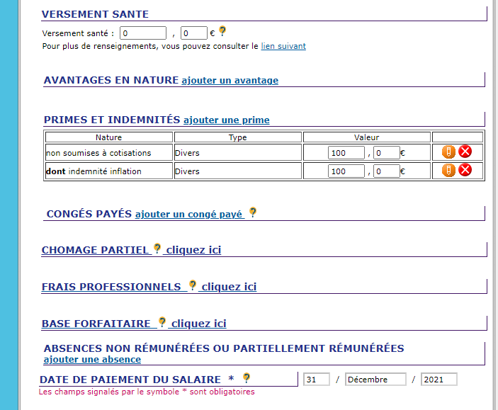 3 Indiquez dans la zone « Indemnités non soumises à cotisations »