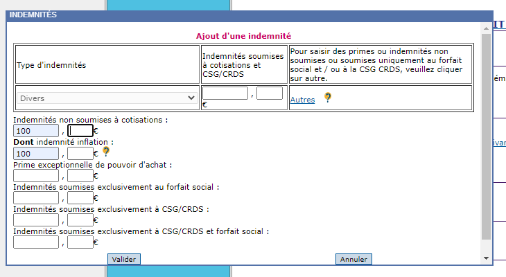 Sélectionnez « Divers » dans la rubrique « Type d’indemnités », puis