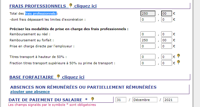 Si vous avez des frais professionnels non soumis, vous pouvez les ajouter également comme suit :