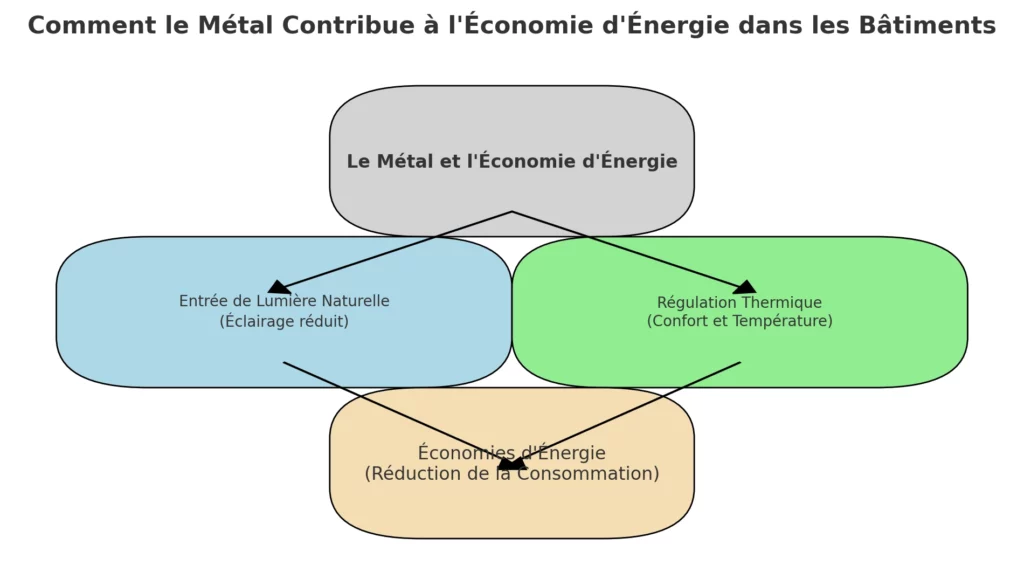 Dans un contexte où l’efficacité énergétique est une priorité, le métal offre des avantages concrets. Par exemple, les façades en verre soutenues par des structures métalliques permettent une entrée généreuse de lumière naturelle dans les bâtiments. Cette luminosité naturelle réduit les besoins en éclairage artificiel pendant la journée, ce qui se traduit par une économie d’énergie importante.