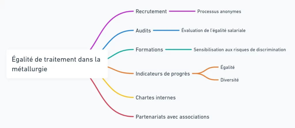 Dans la métallurgie, il est essentiel d’adopter des pratiques qui garantissent l’égalité de traitement. Parmi les mesures à mettre en place, on peut citer des processus de recrutement anonymes, des audits réguliers pour évaluer l’égalité salariale et des formations pour sensibiliser les managers aux risques de discrimination.