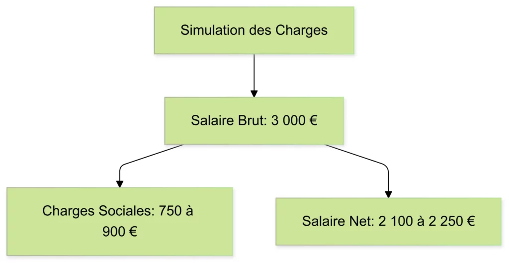 - Total des charges sociales : environ 25 % à 30 % de prélèvements.