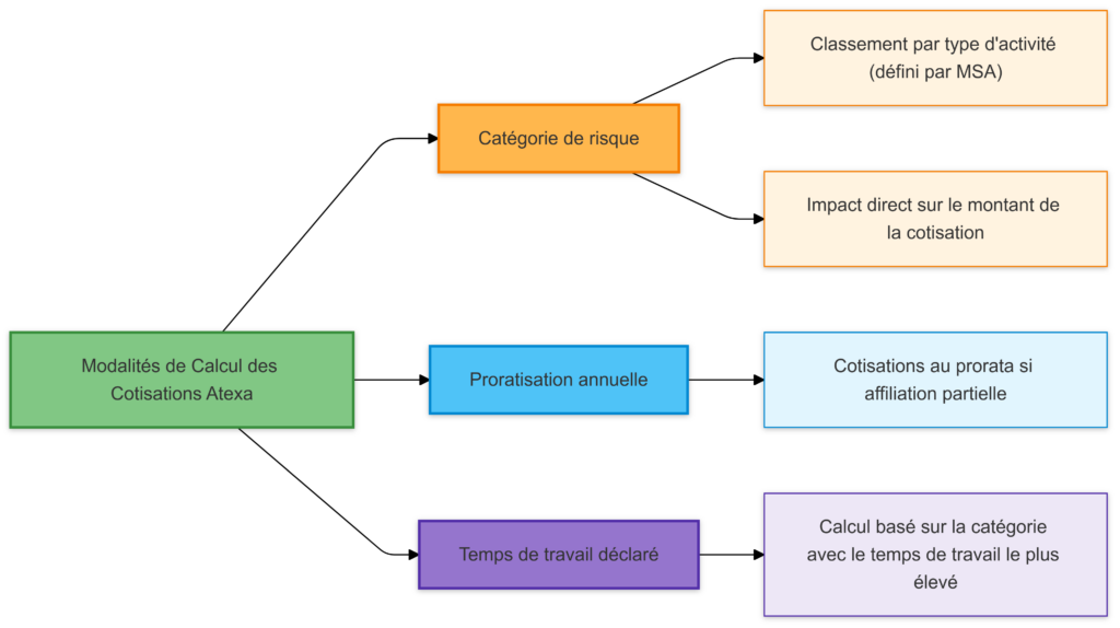 Le calcul des cotisations Atexa prend en compte différents éléments, notamment le niveau de risque, la durée de l’activité sur l’année, et le temps de travail des personnes concernées.