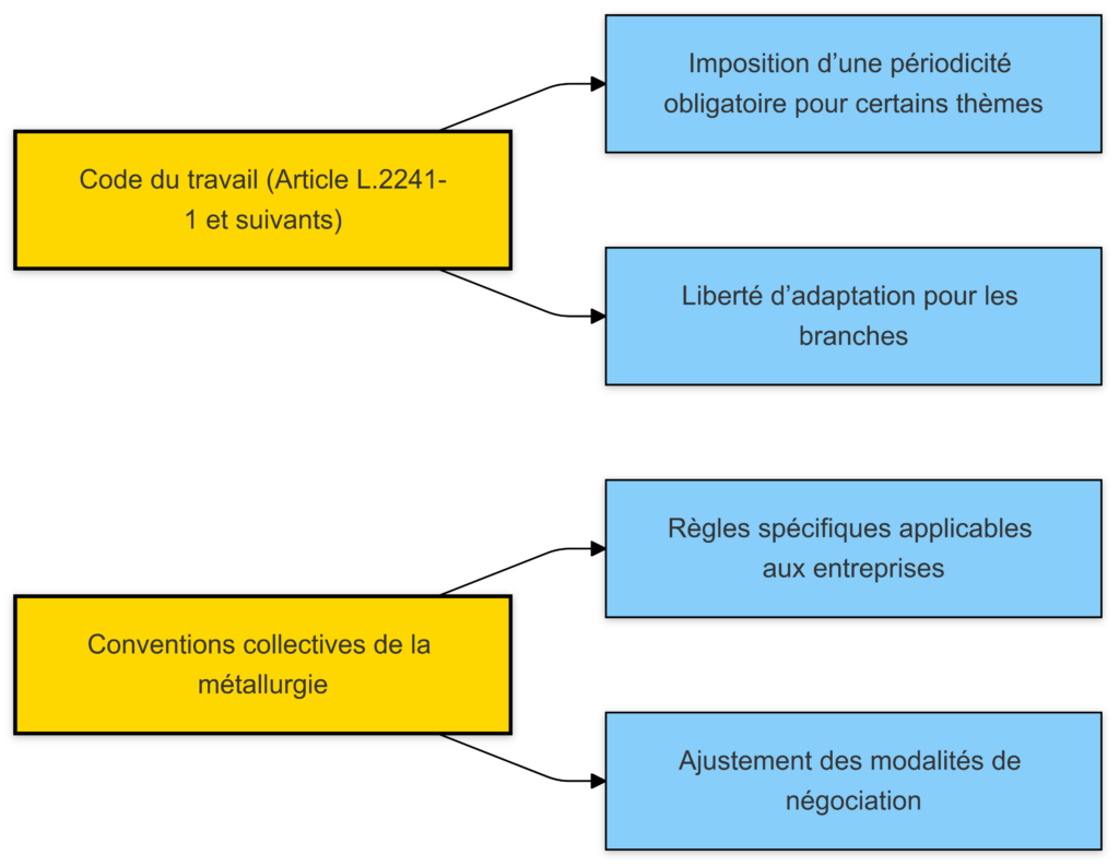 La loi impose des périodicités strictes pour certaines négociations, mais ces règles ne sont pas toujours adaptées aux réalités de la métallurgie. Les partenaires sociaux de la branche ont choisi d’adopter un calendrier plus souple.