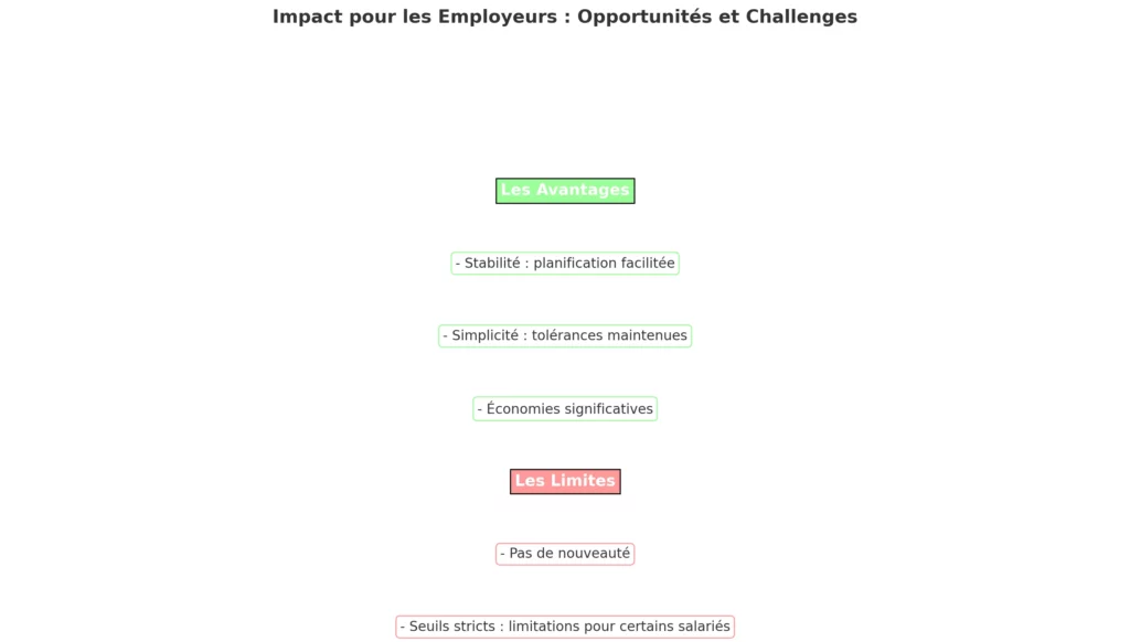 - Stabilité : Les règles inchangées permettent aux entreprises de planifier leur budget sans surprises.