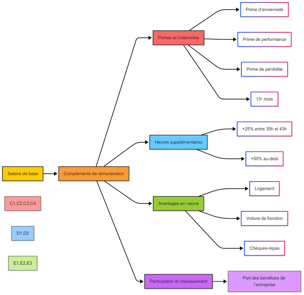 Outre le salaire de base, les salariés peuvent percevoir plusieurs compléments de rémunération :