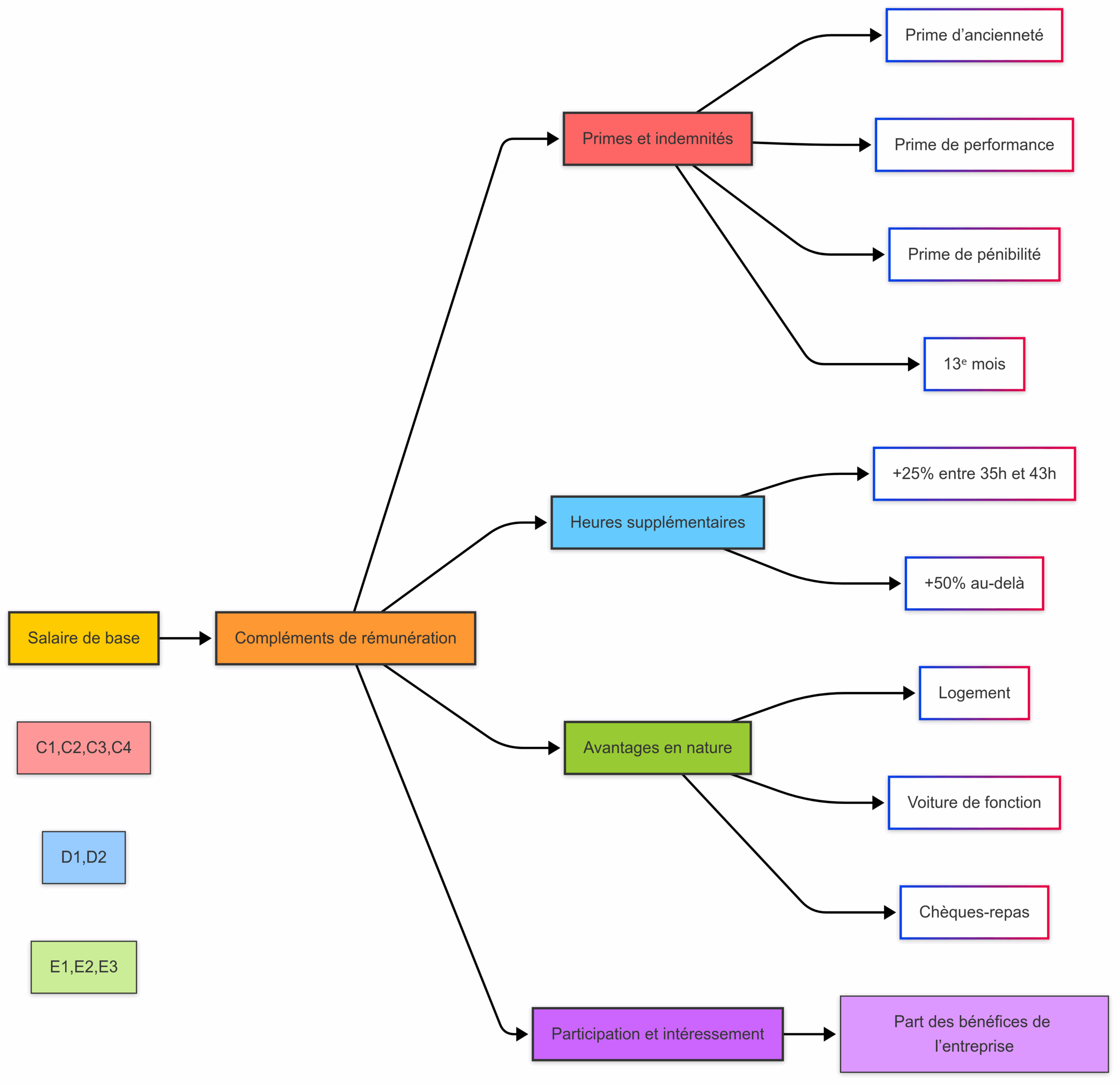 Outre le salaire de base, les salariés peuvent percevoir plusieurs compléments de rémunération :