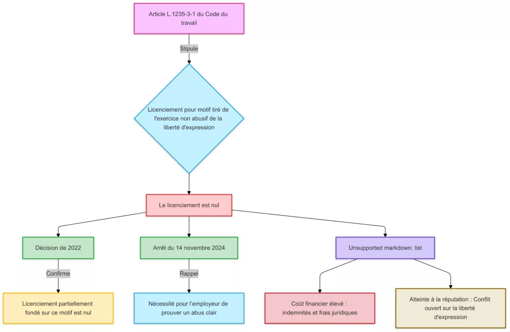 Mais attention, un licenciement prononcé pour un motif lié à l’exercice non abusif de cette liberté est considéré comme nul, car la liberté d’expression est une liberté fondamentale. Les récentes décisions judiciaires, comme celles rendues par la Cour de cassation en novembre 2024, illustrent l’importance d’un cadre clair pour protéger les droits des salariés tout en maintenant une certaine discipline au sein des entreprises.
