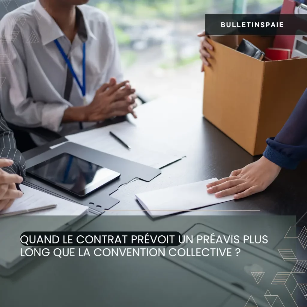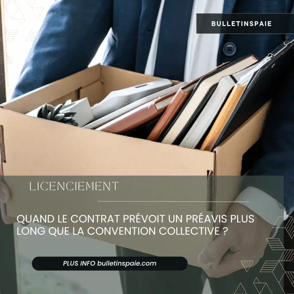 - Si un contrat de travail prévoit un préavis plus long que la convention collective, c’est le contrat qui s’applique, dès lors qu’il est plus favorable au salarié.