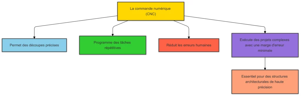 | Commande Numérique | Découpe et usinage de précision, réduction des pertes de matériau |