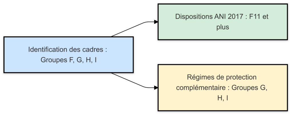 - Les salariés classés F11 et plus peuvent bénéficier des dispositions de l’Accord National Interprofessionnel (ANI) de 2017 sur la prévoyance des cadres.