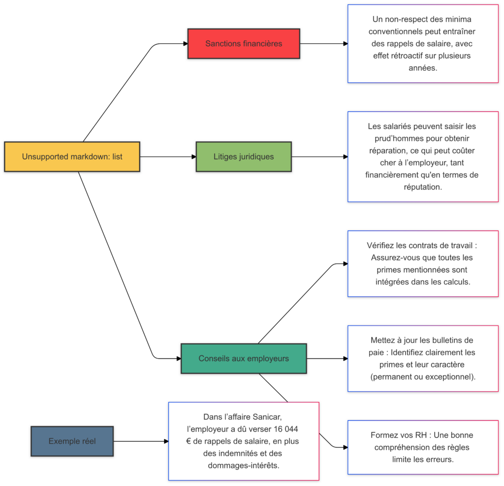 Un non-respect des minima conventionnels peut entraîner des rappels de salaire, avec effet rétroactif sur plusieurs années.