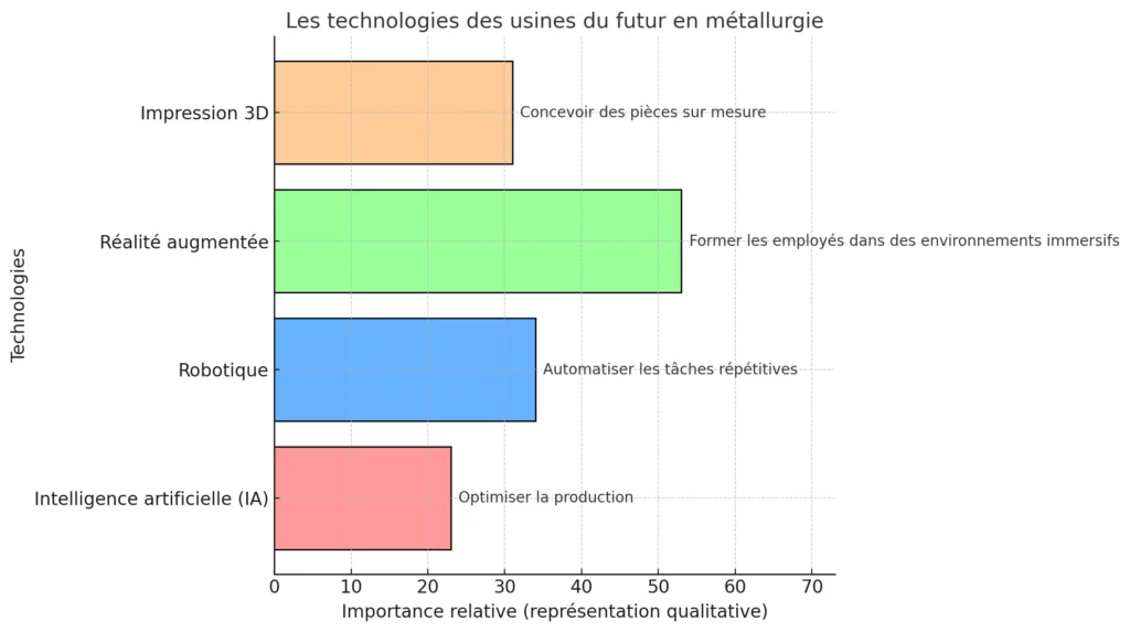 Loin des clichés, les usines modernes adoptent des technologies de pointe : intelligence artificielle (IA), robotique, impression 3D, réalité virtuelle et augmentée. Ces avancées redéfinissent complètement les métiers de la métallurgie, transformant les postes en opportunités passionnantes et valorisantes.