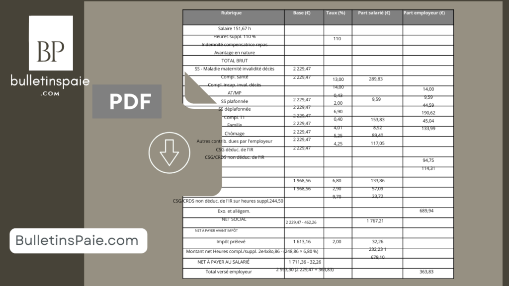 Dans cet article, nous allons explorer un exemple concret de bulletin de paie pour un serveur, travaillant à temps plein, nourri d’un seul repas par jour, tout en bénéficiant d’heures supplémentaires. Ce guide détaillé inclut des tableaux explicatifs pour clarifier les données.