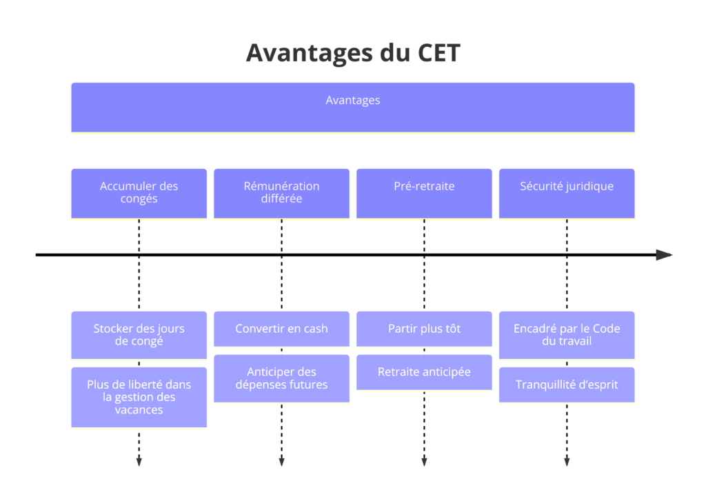 | Sécurité juridique | Le CET est encadré par des accords d’entreprise et le Code du travail | Tranquillité d’esprit pour toi et ton employeur |