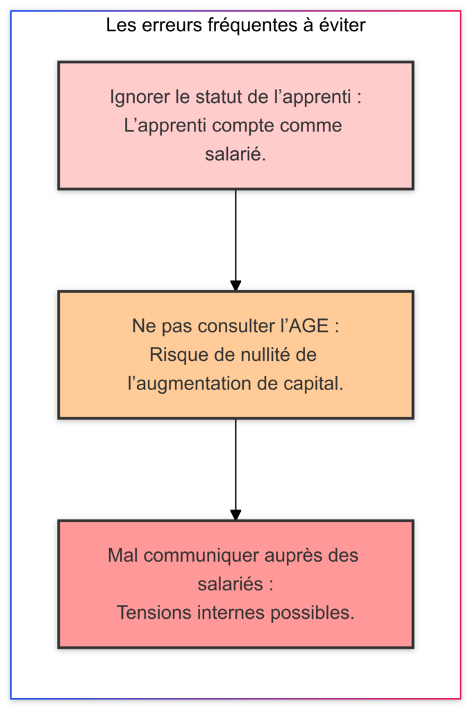 | Vérification du statut salarié de l’apprenti | Considérer l’apprenti comme un salarié. | Sanctions ou litiges possibles. |