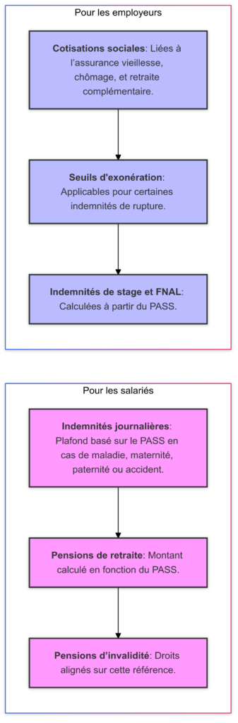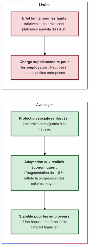 • Effet limité pour les hauts salaires : au-delà du PASS, les droits sociaux sont plafonnés.