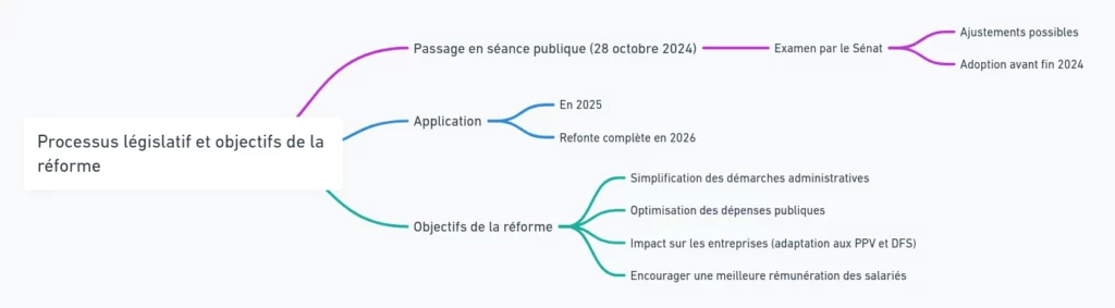 Le texte est encore en discussion au Parlement, avec un passage en séance publique prévu pour le 28 octobre 2024. Ensuite, ce sera au Sénat de l’examiner. On peut s’attendre à ce que des ajustements soient encore apportés au cours des débats, mais la réforme devrait être adoptée avant la fin de l’année, pour une application en 2025 et une refonte complète en 2026.