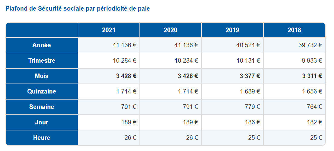 Le plafond de la sécurité sociale est fonction de la périodicité de la paie (mensuelle, trimestrielle, par quinzaine…).