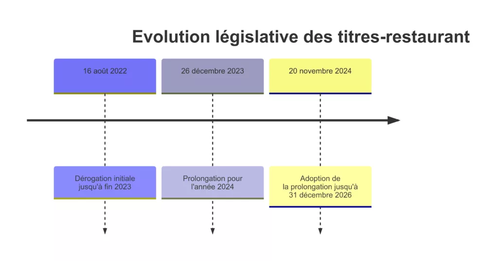 En août 2022, une dérogation a été instaurée pour élargir l’usage des titres-restaurant aux produits alimentaires non directement consommables. Initialement, cette mesure devait durer jusqu’au 31 décembre 2023.