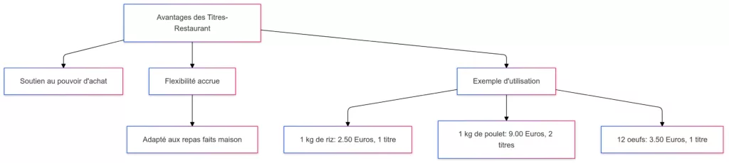 | Titres-restaurant | Souplesse, large choix de produits alimentaires | Limite quotidienne de 25 € |
