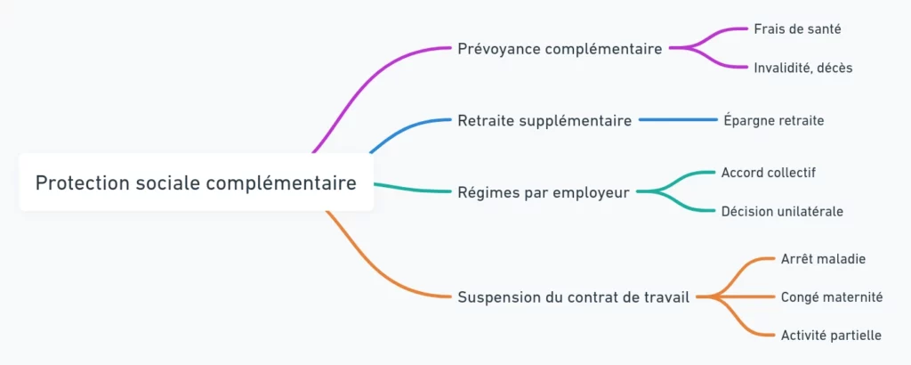 - La prévoyance complémentaire, qui couvre les frais de santé et les risques lourds (invalidité, décès, etc.).
