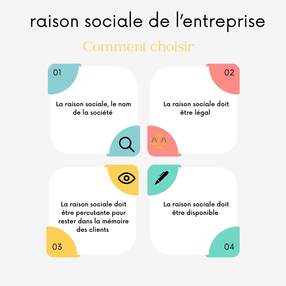 Le choix de la raison sociale varie selon la forme juridique de l’entreprise. Voici quelques exemples :