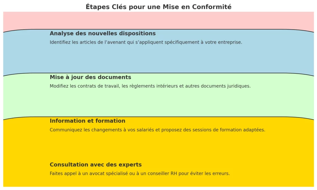 Pour les entreprises, se conformer à cet avenant peut sembler complexe. Voici les étapes à suivre pour assurer une transition fluide :