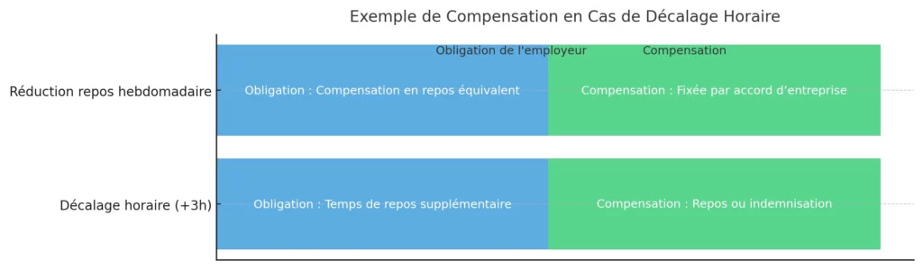 | Réduction du repos hebdomadaire | Compensation en repos équivalent | Fixée par accord d’entreprise |