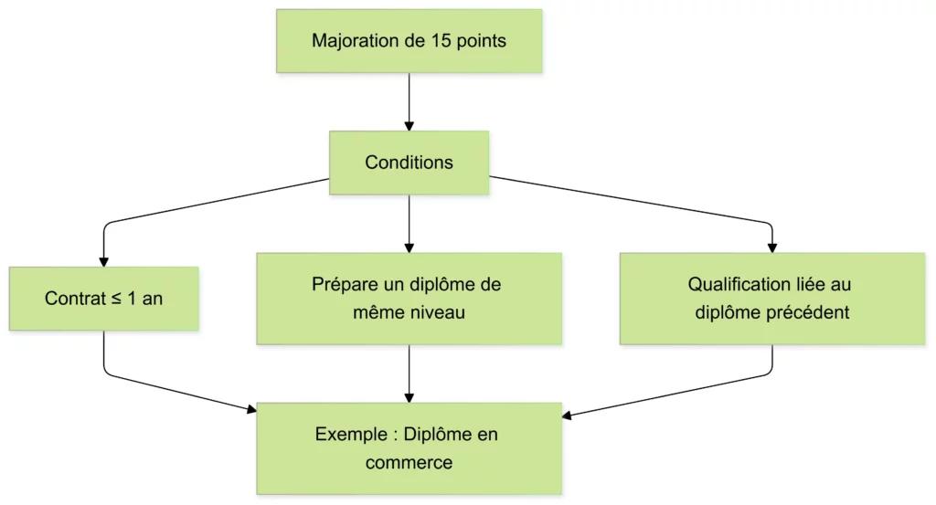 Dans certaines situations, la rémunération de l’apprenti peut être majorée de 15 points. Cette majoration s’applique lorsque :