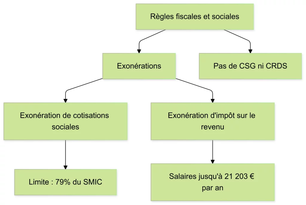 - Exonération de cotisations sociales dans la limite de 79% du SMIC.
