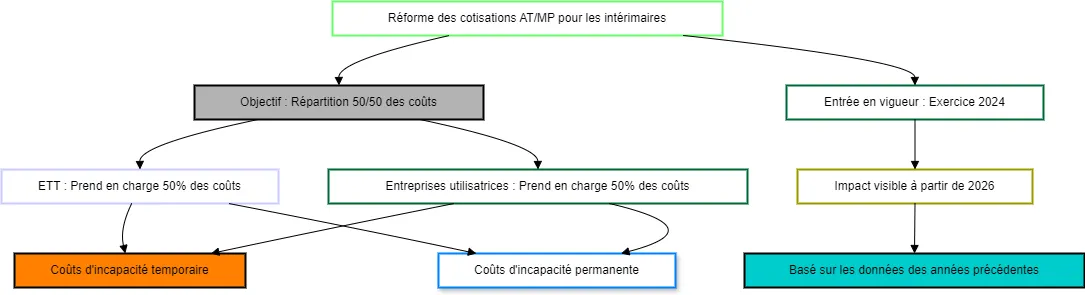 La réforme des cotisations AT/MP pour les intérimaires représente un vrai changement dans la façon dont les coûts des accidents du travail et des maladies professionnelles sont répartis entre les entreprises de travail temporaire (ETT) et les entreprises utilisatrices. L’idée, c’est d’équilibrer les charges, de manière à soulager les ETT et à responsabiliser les entreprises qui utilisent leurs services.