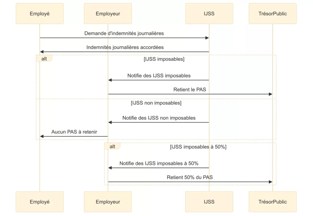 Particularité : Le prélèvement à la source ne s’applique que durant les 60 premiers jours d’arrêt de travail. Au-delà de cette période, l’employeur ne doit plus soumettre les IJSS au PAS.