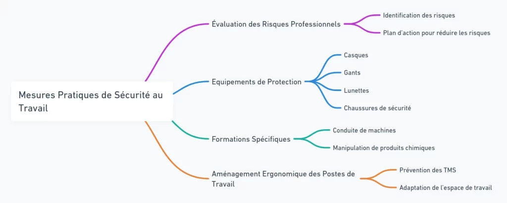 | Évaluation des risques | Identifier les dangers | Repérage et analyse des risques pour chaque poste. |