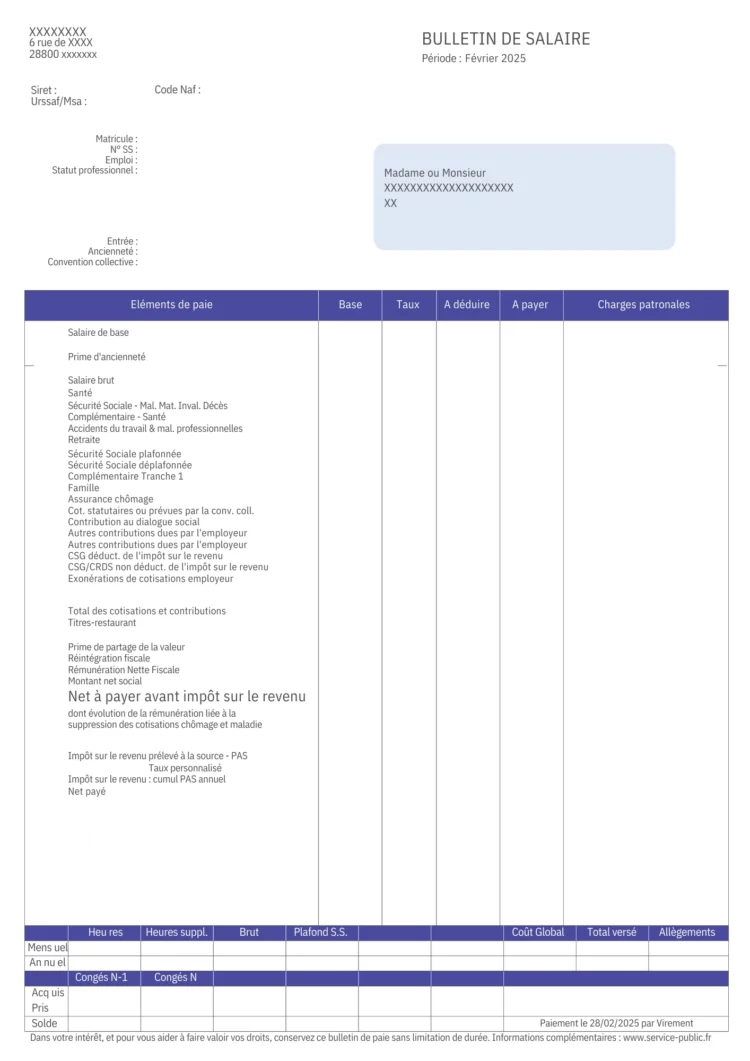 • Le net à payer avant impôt : c’est ce que tu reçois avant que l’impôt sur le revenu (prélevé à la source depuis 2019) ne soit retiré.