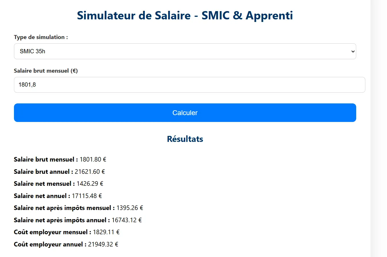 Simulateur de Salaire – SMIC & Apprenti