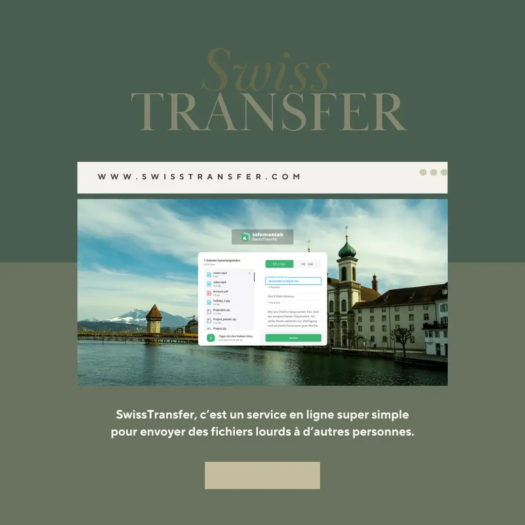 SwissTransfer, c’est un service en ligne super simple pour envoyer des fichiers lourds à d’autres personnes. Pas besoin de créer un compte ni de payer quoi que ce soit. Tu vas sur le site, tu glisses tes fichiers, tu choisis combien de temps ils seront accessibles et tu récupères un lien à partager ou tu l’envoies directement par e-mail.