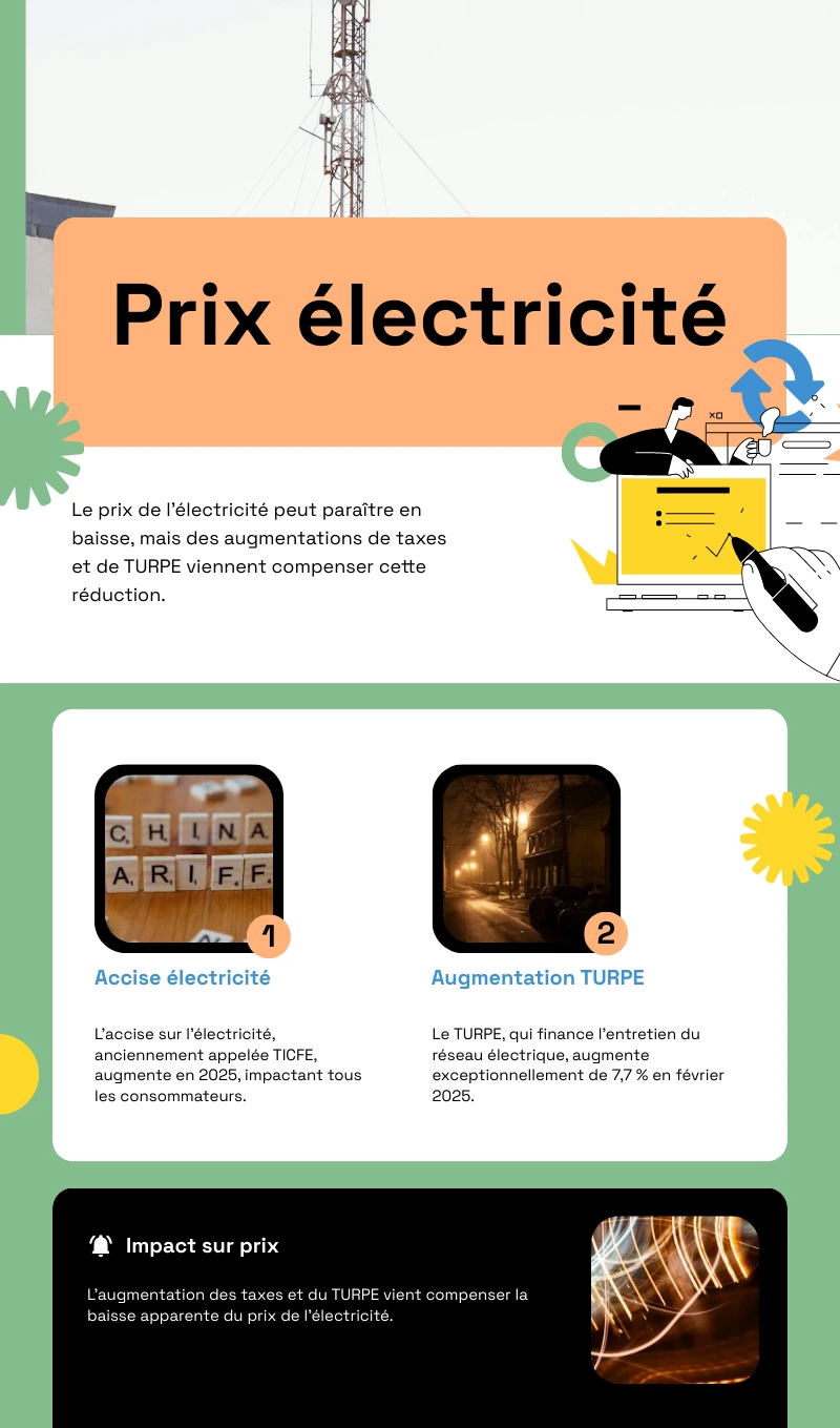 2. Hausse du TURPE (Tarif réglementé électricité 15 % au 1ᵉʳ février 2025)