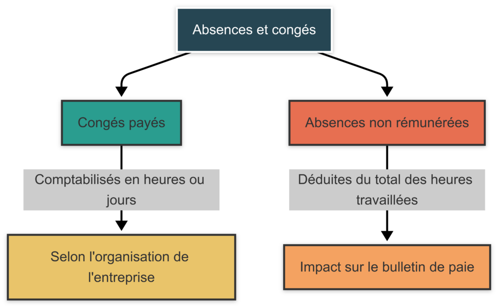 - Les congés payés sont comptabilisés en heures ou en jours selon l’organisation de l’entreprise.
