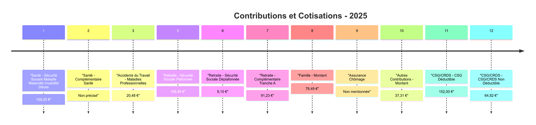 • Sécurité Sociale-Maladie Maternité Invalidité Décès : Cette cotisation s’élève à 159,25 €. Elle couvre les risques liés à la santé et à la maternité.