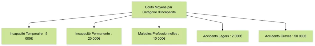 Les coûts moyens pour chaque catégorie d’incapacité temporaire et permanente sont établis pour chaque comité technique national, détaillés dans l’annexe 2.