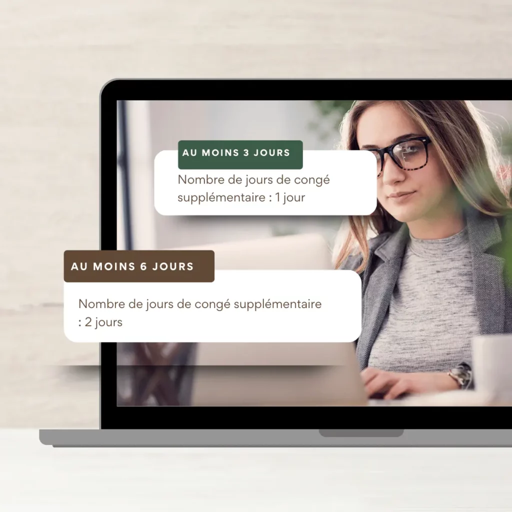 • Le salarié peut obtenir jusqu’à 2 jours de congé supplémentaires par an.